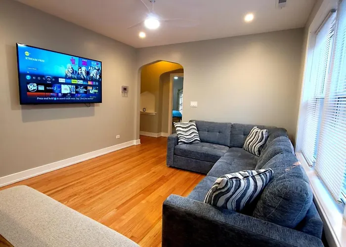 El Beautiful 4 Bedroom 2 Bathroom Apartment Near Everything Chicago está situado a unos 7 km del Instituto Oriental de Chicago, y a unos 15 minutos en coche del Museo de Ciencia e Industria. Este apartamento de 177 m² también dispone de Wi-Fi y un aparcamiento.